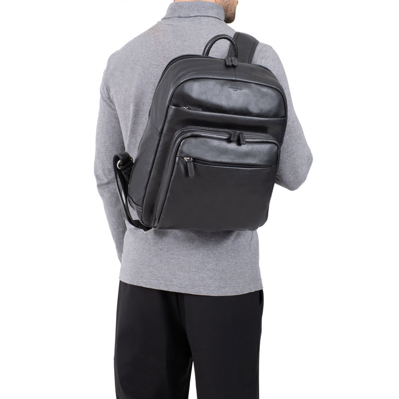 این کوله یک عدد زیپ اصلی با دو عدد سر زیپ دارد .در قسمت بیرونی کوله پشتی سه جیب زیپ دار جلو (شامل یک جیب تخت) با یک محفظه تلفن. سه جای کارت. دو محفظه خودکار و همچنین یک جیب پشت زیپ دار صاف وجود دارد .