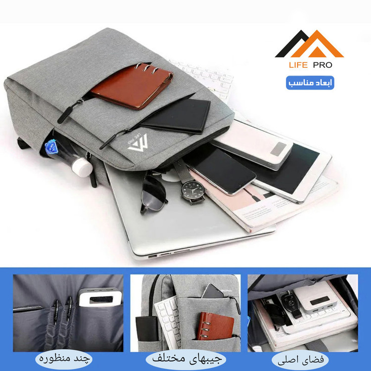 طول، عرض و ضخامت : 120x300x420 میلیمتر • وزن : 600 گرم • مناسب برای لپ تاپ 15.6 اینچ • مجهز به خروجی USB