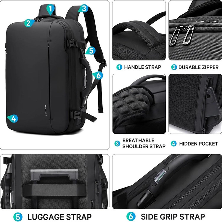 محفظه کابل و شارژر , جای قمقمه , محفظه نگهداری کفش , محفظه نگهداری لباس زیر , محفظه نگهداری تبلت , دارای دو محفظه اصلی , محفظه نگهداری لپتاپ