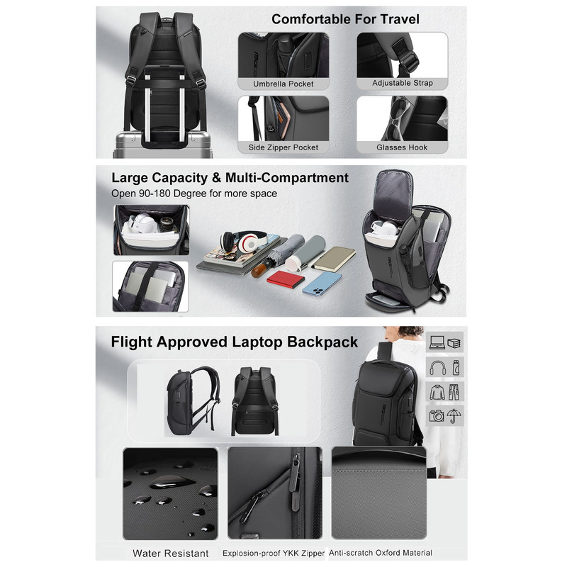 جیبهای متعدد: 11 جیب و محفظه برای سازماندهی لوازم شما، از جمله جیبهای مخفی داخلی برای کلید، گذرنامه، مدارک تعبیه شده و به علاوه، در هر دو طرف کوله برای حمل آسان بطری و چتر جیب های مخصوص طراحی شده.