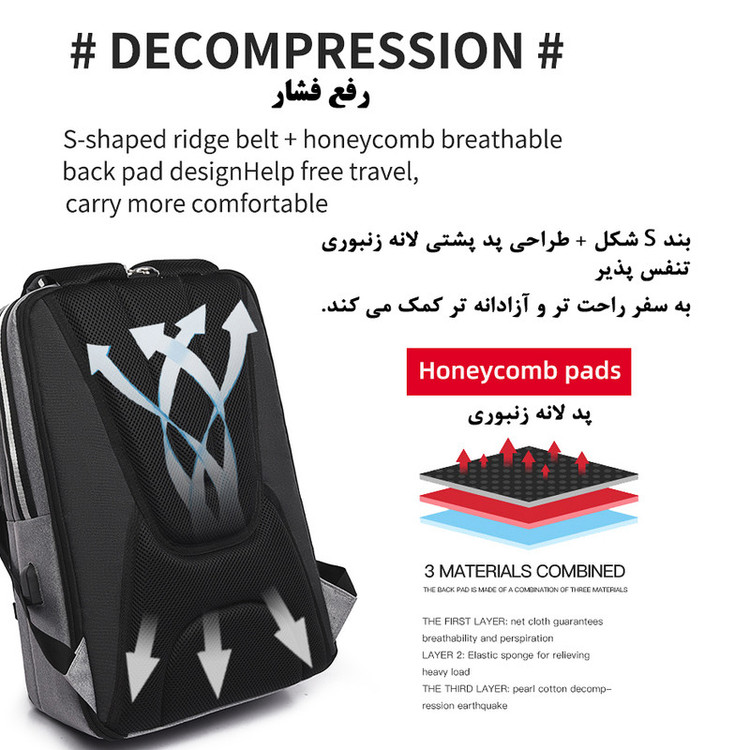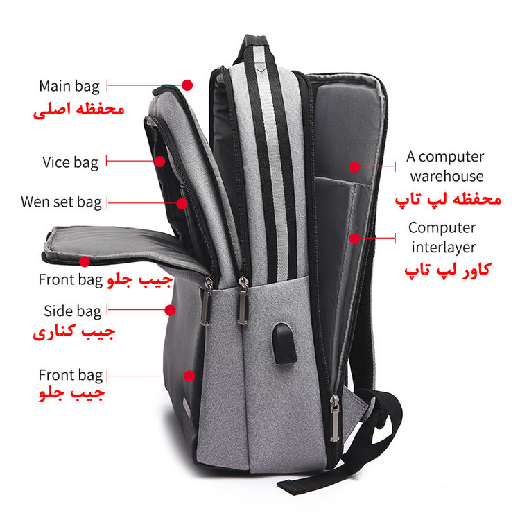 دارای خروجی USB مخصوص شارژ تلفن همراه محفظه محافظ لپ تاپ