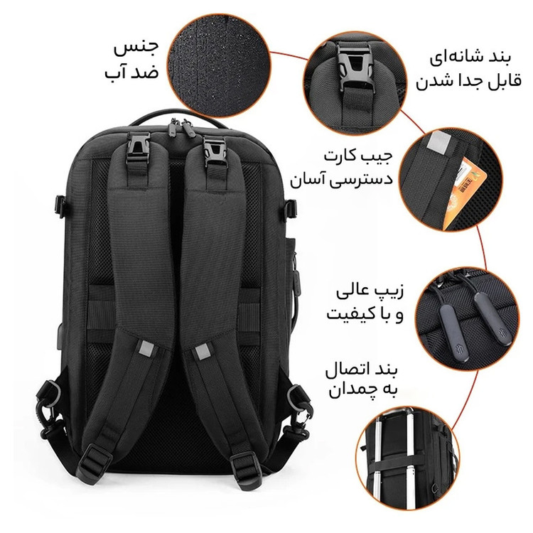 امکانات و قابلیتها: زیپ بقل قابل تنظیم برای بطری آب و قمقمه