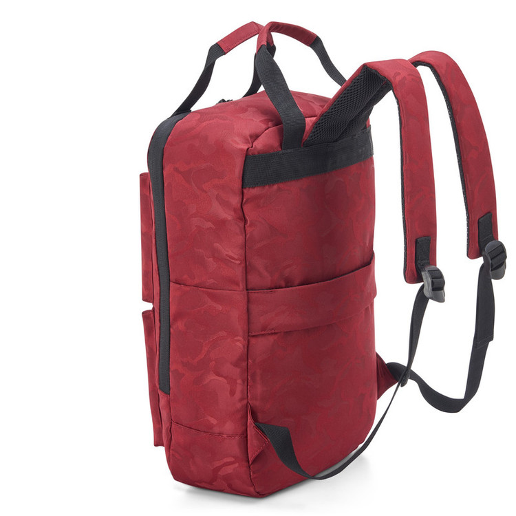 جنس رویه کار از پلی استر ضد آب دارای دو جیب بیرونی و دو محفظه بطری امکان سوار کردن کوله بر روی دسته ترولی چمدان