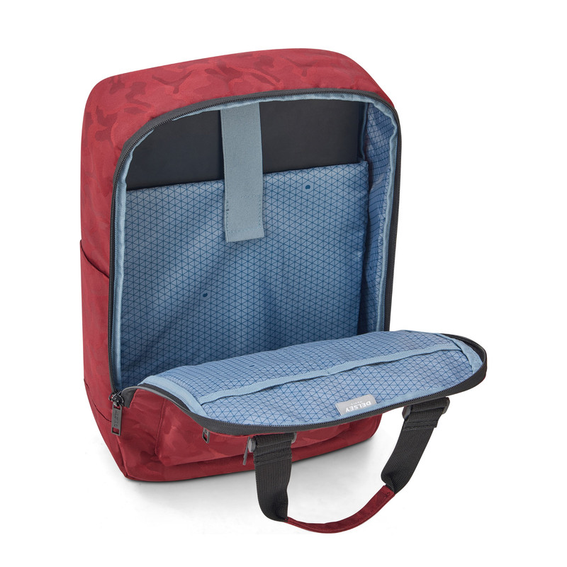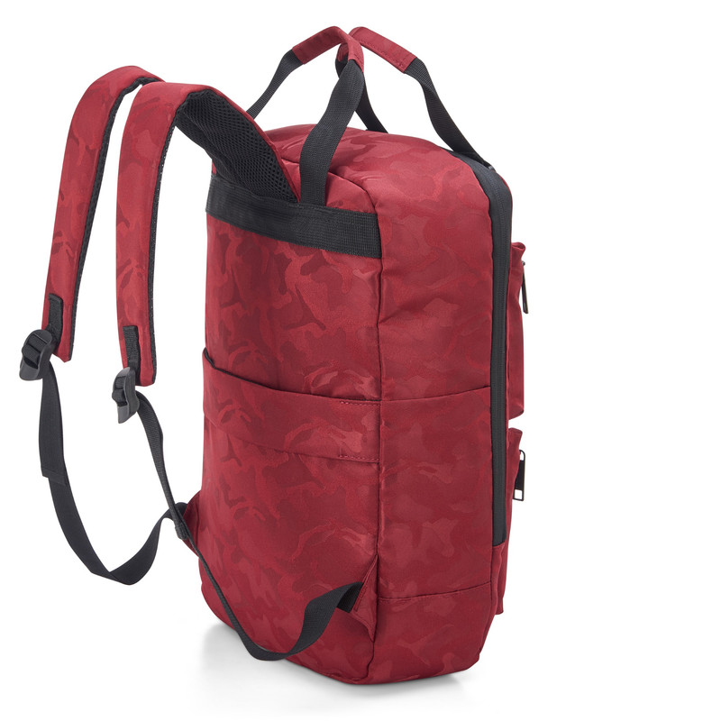 جنس رویه کار از پلی استر ضد آب دارای دو جیب بیرونی و دو محفظه بطری امکان سوار کردن کوله بر روی دسته ترولی چمدان