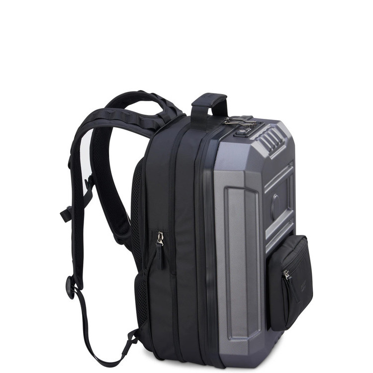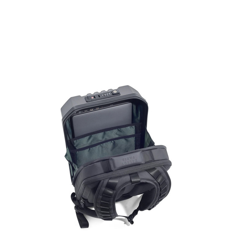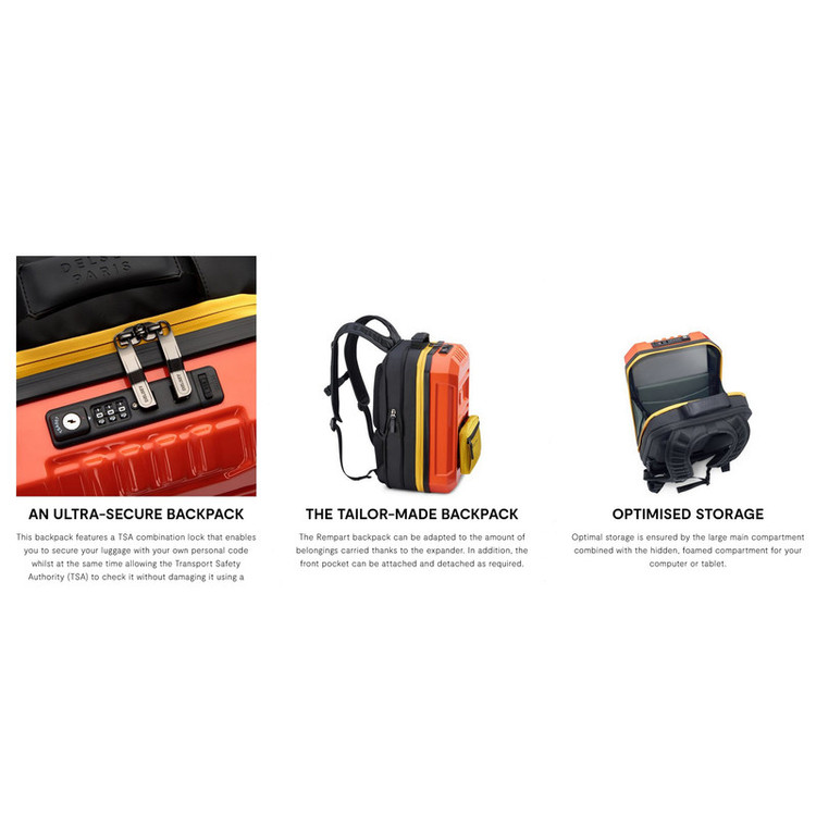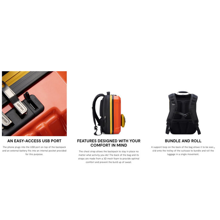 مقاومت در برابر آب , ضربهگیر حبابدار در محفظه لپتاپ , زیب با قابلیت قفل شدن , دارای پورت USB , قابلیت نصب روی دسته چمدان