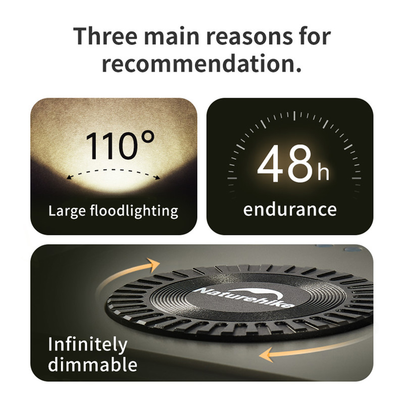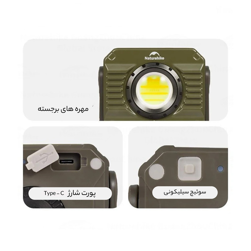 نور افکن چند منظوره Naturehike CNK2300012. مجهز به لامپ LED با حداکثر روشنایی 1200LM، زاویه پرتو گسترده 110 درجه. کل فضای چادر را تا 30 متر مربع روشن کنید.حتی به عنوان پاور بانک برای شارژ دیگر دستگاه ها استفاده کنید.با حد اکثر زمان نور دهی 48 ساعته خیالتان بایت چند شب کمپینگ راحت باشد.هچنین با داشتن استاندارد ضد آب IPX4 از شب های بارانی در کمپینگ لذت ببرید.با قابلیت تنظیم رنگ نور از سفید تا قرمز برای دید در شب و بدون ایجاد مزاحمت برای دیگران.قابلیت اتصال به 3 پایه،اتصال آهنربایی و آویزان کردن.
