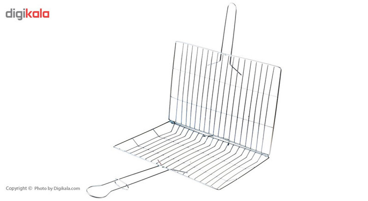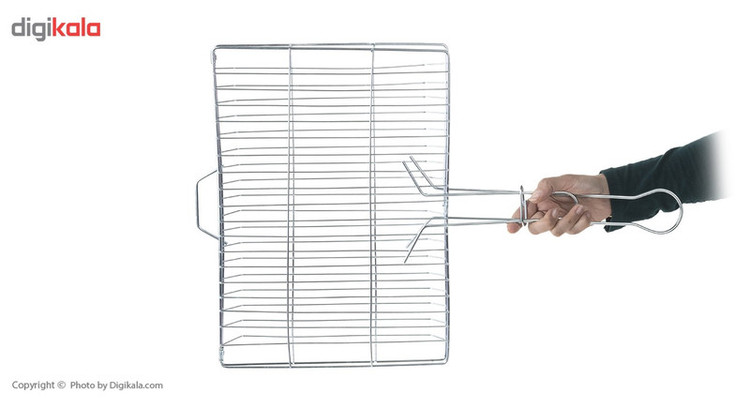 - مناسب برای کباب کردن موادغذایی گوناگون - جنس: فلزی - طول و عرض قسمت توری 30 × 40 سانتیمتر - طول 29 سانتیمتر - دارای یک گیره برای متصل نگه داشتن صفحههای توری به یکدیگر