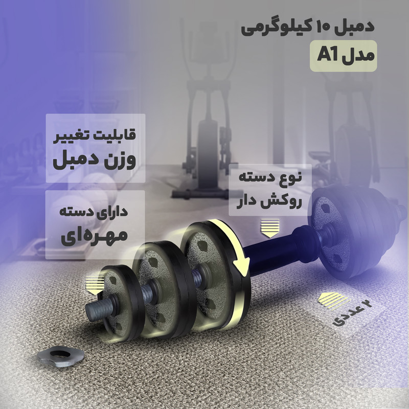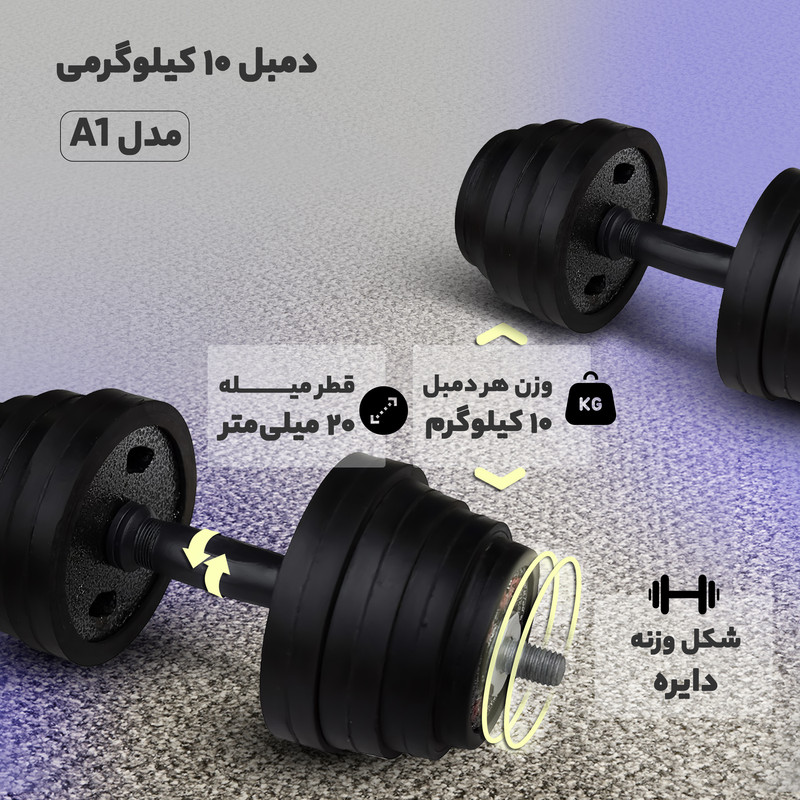 دمبل مدل A1 وزن 10 کیلوگرمی بسته 2 عددی