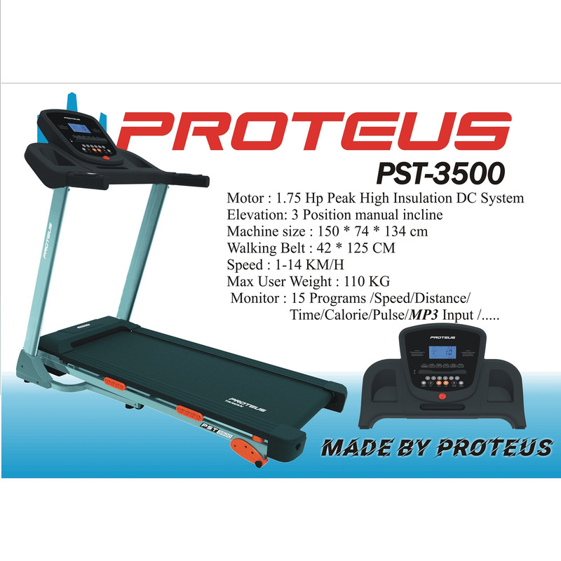 این دستگاه مجهز به یک موتور 1.75 اسب بخاری می باشد که می تواند سرعت این دستگاه را تا 14 کیلومتر بر ساعت افزایش دهد. در این مدل شیب مکانیکی یا همان شیب دستی در نظر گرفته شده است به صورتی که برای تغییرات ارتفاع باید تمرین را متوقف کنید و بعد از تنظیم آن به تمرین بپردازید که همین باعث ایجاد وقفه در تمرین میشود، در مدل های شیب مکانیکی وقتی از برنامه های تمرینی استفاده میکنید این برنامه های فقط میتوانند سرعت دستگاه را به صورت اتوماتیک تنظیم نمایند، درحالیکه در مدل شیب برقی آن امکان تغییرات میزان شیب نیز با توجه به برنامه انتخابی امکان پذیر میباشد. لازم به ذکر است که مدل PST-3500M دارای شیب برقی می باشد و تنظیم شیب دستگاه بروی پنل دستگاه قابل انجام می باشد.