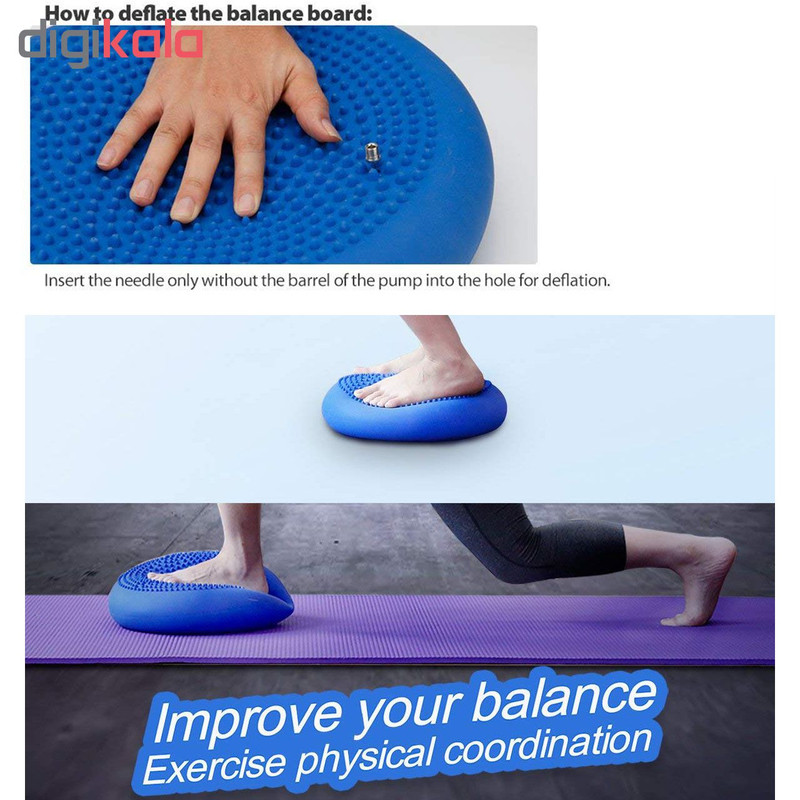 توپ نیم دایره تعادلی وسیله ای دایره شکل است که سطحی صاف و سخت برای ایستادن دارد و سطح زیرینش گنبدی شکل و ناپایدار است. با ایستادن بر روی این تخته، تمرین حفظ تعادل می کنید. در ابتدای شروع کار با توپ نیم دایره تعادلی ممکن است مدام به عقب، جلو و اطراف حرکت کنید و ایستادن بر روی آن برایتان سخت باشد. اما با تمرین و مداومت، شاهد تغییر و بهبود در تعادلتان خواهید بود. حتی در مراحل پیشرفته تر می توانید این تمرین را با چشم بسته انجام دهید که در آن صورت به تعادل کامل بدن دست می یابید. کار با توپ نیم دایره تعادلی علاوه بر افزایش تعادل، به توسعه مغز و توانبخشی جسمی نیز کمک کرده و ضمن مفرح بودن، قسمتی از برنامه ورزشی ورزشکاران می باشد. همچنین با تمرین تعادل، سرعت واکنش های شما در مواقع بحرانی افزایش می یابد. زیرا با ایستادن بر روی تخته تعادل، مغز تمرین می کند که در یک وضعیت ناپایدار، به سرعت اعضای بدن را هماهنگ کرده و بهترین راه را برای جلوگیری از افتادن پیدا کند. توپ نیم دایره تعادلی در تقویت عضلات پایین تنه به خصوص مچ و عضلات دوقلو پا موثر بوده و در خانه، باشگاه و مراکز فیزیوتراپی قابل استفاده می باشد.در ورزش های هوازی ضربان قلب به شدت بالا رفنه و ماهیچه ها مشغول فعالیت می شوند. از جمله فوایدی که میتوان برای این نوع ورزش ها مطرح کرد سلامت قلب، کاهش وزن، جلوگیری از افسردگی، طول عمر و نشاط می باشد. امروزه ورزش های هوازی در بیشتر سالن های ورزشی برای کلیه افراد توصیه می شود. امروزه آمادگی جسمانی دارای دو بخش مهم می باشد. بخش اول مربوط به سلامتی ورزشکاران که شامل قدرت ،استقامت و انعطاف پزیری بوده که بایستی ورزشکاران برای اجرای تمرینات ورزشی دارای این شرایط باشند . بخش دوم مربوط به مهارت ورزشکاران می باشد که اگر ورزشکاران این موارد را داشته باشند و یا توانائی داشته باشند عملکرد آنها بهبود و توسعه می یابد ، این موارد شامل ؛ سرعت ، چابکی، عمل و عکس العمل ،هماهنگی ،توان و تعادل می باشد.تعادل در آمادگی جسمانی به توانایی حفظ بدن در فضا گفته می شود که به دو صورت ایستا و پویا می باشد (ایستا مانند بالانس زدن روی دست ها و پویا مانند اجرا ی حرکتهای دارحلقه – بارفیکس یا پارالل) تعادل یکی از ضروری ترین فاکتورهای آمادگی جسمانی بوده که اغلب نسبت به انجام تمرینات آن بی توجهی می شود . همه ورزشکاران در تمام رشته های ورزشی می بایست تمرینات تعادلی را در برنامه تمرینی خود قرار دهند . لازمه داشتن تعادل خوب و قوی به دارا بودن تمرکز حواس و عضلات قوی می باشد . هر چقدر عضلات قوی تر باشند و تمرکز اعصاب مرکزی بیشتر باشد ورزشکار دارای تعادل بهتری است . این دقیقا همان نکته ایی است که ورزشکاران رشته ورزشی ژیمناستیک در سطوح حرفه ای انجام می دهند. فاکتور تعادل در ورزش هایی چون ژیمناستیک، باله، بسکتبال، ورزش های رزمی و دیگر ورزش ها، نقش مهمی را ایفا می کند. تعادل بالا فرد را قادر می کند وضعیت بدن یا جهت حرکت آن را با سرعت و دقت زیاد تغییر دهد. قدرت ، تعادل ، هماهنگی و استقامت از انواع فاکتورهای ضروری چابکی می باشد، همچنین تمرینات چابکی را می توان متنوع و بسیاری را برای جلسات تمارین تیم ها چه بصورت چابکی ایستا و چه به صورت چابکی پویا طراحی کرد. حال یکی از این نوع تمرینات ، افزایش تعادل با بالشتک بالانس یا تخته تعادلی است که در اکثر ورزش ها برای بالا بردن تعادل و استقامت از این وسیله ورزشی استفاده می شود و همچنین ورزشکاران حرفه ای زیادی در رشته های مختلف ورزشی از تخته بالانس برای رسیدن به اوج آمادگی هوازی خود استفاده می کنند. بالشتک تعادل یا توپ تعادل معرفی شده در این بخش دارای قطر 35 سانتی متر و ارتفاع 8 سانتی متر بوده و از جنس لاستیک بسیار با کیفیت و قابلیت پر شدن با باد را دارد ، همچنین بسیار سبک و بادوام است و شرایطی را فراهم کرده تا در زمان ورزش، احساس رضایت بیشتری را تجربه کنید.