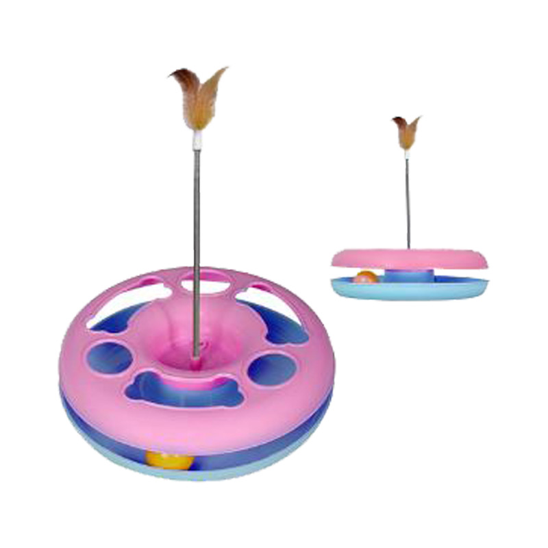 این اسباب بازی زیبا و سرگرم کننده از جنس پلاستیک و پلی استر می باشد که هم مقاومت بالایی دارد هم رنگ آن کاملا بی ضرر است . همچنین دارای یک پر مصنوعی بسیار نرم است که جذابیت آن را برای گربه ها بیشتر می کند. حتی در برخی گربه ها فنر و پر روی اسباب بازی از خود آن برای گربه جذاب تر است درون آن سه توپ همراه زنگوله کوچک قرار دارد که با هر بار ضربه به آن به صدا در می آید و باعث تحریک گربه ها حتی تنبل ترین آنها برای ادامه بازی میشود .