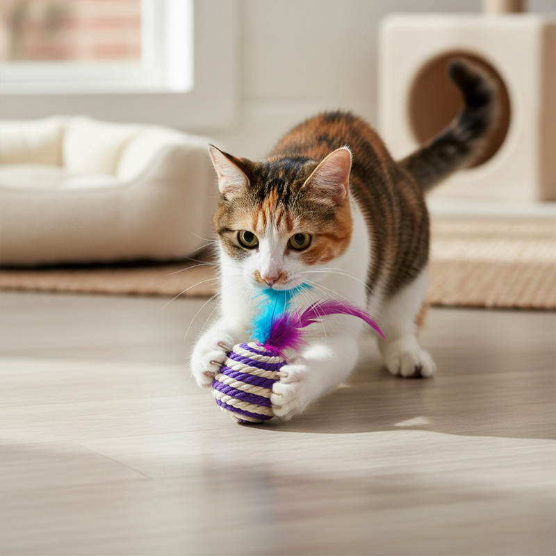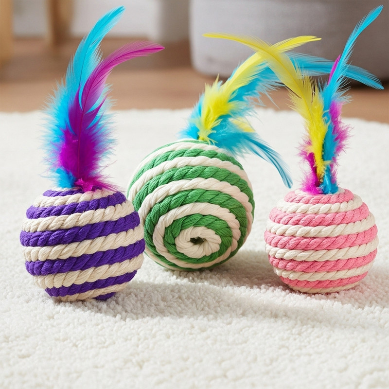 گربهها به طور غریزی به بافتهای طبیعی، نرم و اجسام متحرکی مانند پر واکنش نشان میدهند. توپ پردار نیکوپت دقیقاً برای پاسخ به همین غرایز طبیعی و با اولویت قرار دادن سلامت حیوان خانگی شما طراحی شده است. ویژگی اصلی و متمایز کننده این اسباب بازی، متریال آن است. برخلاف اکثریت قریب به اتفاق اسباببازیهای موجود در بازار که از کنف (با بافتی زبر و خشن) یا بند پلی استر (مشابه بند کتانیهای ارزان قیمت و ساخته شده از مواد پلاستیکی) استفاده میکنند، توپ نیکوپت با کیفیتی بیرقیب و متفاوت تولید شده است. ما در ساخت این محصول به طور انحصاری از بهترین طناب و نخ مکرومه ۱۰۰٪ پنبه خالص بهره بردهایم. این انتخاب، بافتی بسیار نرم، طبیعی و لوکس به اسباب بازی میدهد که گربه شما از چنگ زدن، غلتاندن و به دندان گرفتن آن لذت خواهد برد. مهمتر از آن، پنبه خالص بودن محصول تضمین میکند که این توپ هیچگونه حساسیتی برای پوست یا سیستم تنفسی گربه ایجاد نکند. جذابیت این توپ با یک پَر وارداتی رنگی و باکیفیت در بالای آن تکمیل میشود. این پر با حرکات ظریف خود، غریزه شکار را در گربه بیدار کرده و ظاهری زیبا به محصول بخشیده است که هم برای پت و هم برای صاحب او جذابیت بصری دارد. علاوه بر جذابیت بصری، در داخل هر توپ یک زنگوله کوچک با ظرافت کار شده است؛ صدای این زنگوله (صدادار) که با هر حرکت تولید میشود، به شدت حس کنجکاوی و غریزه شکار گربه را تحریک کرده و او را برای ساعتها به بازی و فعالیت تشویق میکند. در راستای تعهد به سلامت، در فرآیند ساخت این توپ پردار نیز از چسب کاملاً بدون بو و ایمن استفاده شده تا هیچ خطری حیوان شما را در حین بازی تهدید نکند. تفاوت کیفیت، بافت، ایمنی و حس طبیعی این محصول با نمونههای مشابه بازاری که از کنف یا پلی استر استفاده میکنند، به معنای واقعی کلمه "تفاوت از زمین تا کیهان" است. این اسباب بازی گرید A، انتخابی ایدهآل و ایمن برای تمامی نژادهای گربه محسوب میشود.