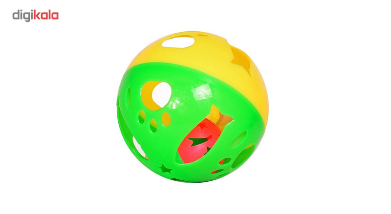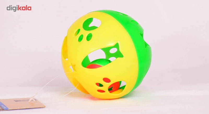 اسباب بازی سگ با طراحی ماهی, پنجه سگ و ستاره ساخته شده به صورت دو نیم دایره زرد و سبز دارای یک عدد توپ دو رنگ دیگر در درون آن دارای یک عدد زنگوله در درون توپ داخلی یک توپ هیجان انگیز و پر سر و صدا برای سگ ها ساخته شده از مواد مرغوب و درجه یک