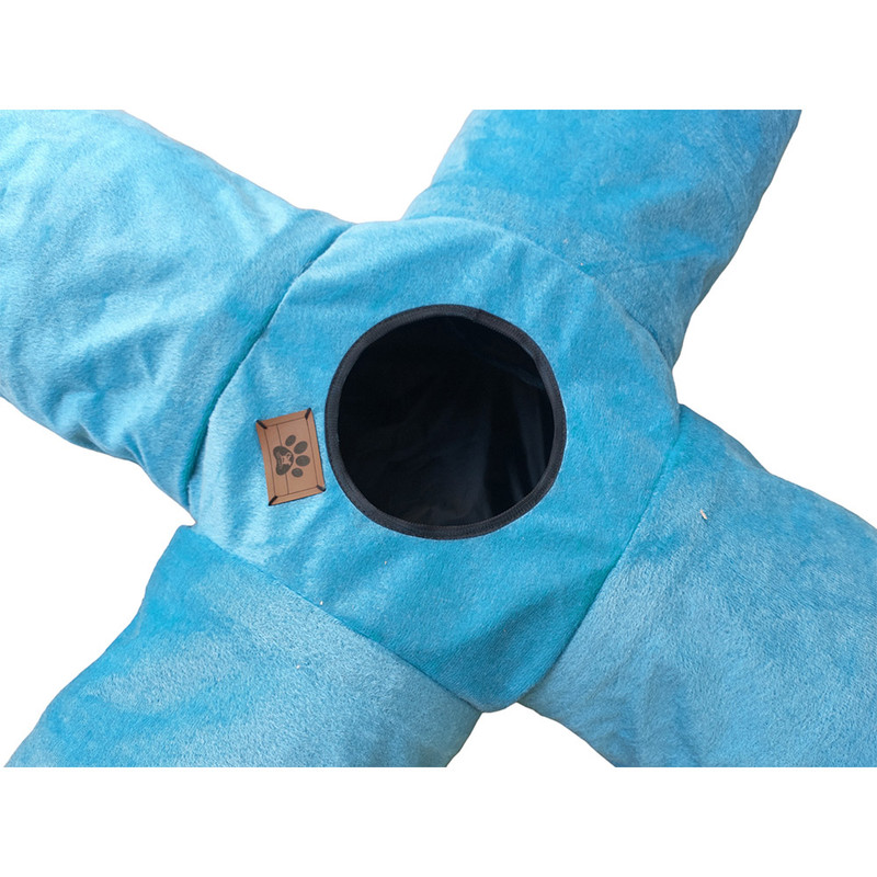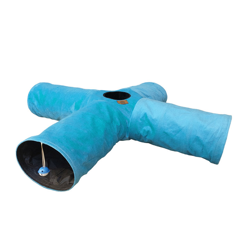 تونل گربه هیواپت مدل چهارراهی، یک اسباببازی و پناهگاه فوقالعاده برای گربههای خانگی است که بهصورت ویژه توسط برند معتبر هیواپت طراحی و تولید شده است. این تونل با طراحی خاص به شکل چهارراهی، از چهار شاخهی مجزا تشکیل شده که در مرکز به هم متصل میشوند. این ساختار باعث میشود گربهها بتوانند از جهات مختلف وارد تونل شوند و تجربهای سرگرمکننده و متنوع داشته باشند. جنس بدنه تونل از پارچهی ضدخش و مقاوم به پنجه گربهها ساخته شده که دوام بالایی دارد و در عین حال لطافت مناسبی برای بازی و استراحت حیوان فراهم میکند. داخل تونل با سازهی فنری قابل انعطاف پشتیبانی میشود که باعث حفظ فرم و استحکام محصول در طول استفاده میگردد. این تونل بهراحتی قابل تا شدن و جمع شدن است و فضای زیادی اشغال نمیکند؛ به همین دلیل هم برای استفاده در خانه و هم در زمان سفر یا جابجایی گزینهی مناسبی است.