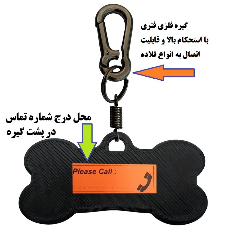 دارای بدنه پلاستیکی منعطف کاملا بهداشتی و ضد حساسیت با قابلیت شستشو و ضد عفونی x دارای گیره فلزی فنری با استحکام بالا و قابلیت اتصال به انواع قلاده x دارای لیبل مخصوص ثبت شماره تماس مالک حیوان در پشت پلاک