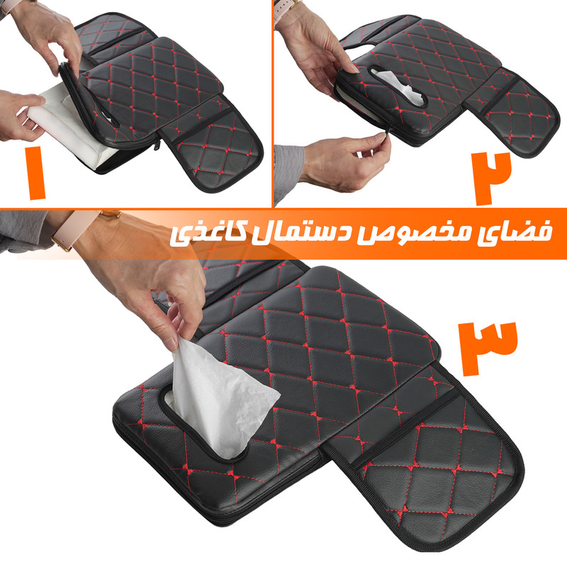 تولید ایران، کیفیت عالی، برای روی کنسول، دارای پد نرم برای قرارگیری دست، داای جا دستمال، دو عدد جیب نظم دهنده برای خرده ریز