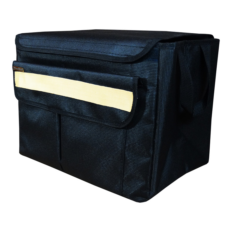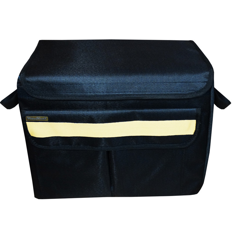 این نظم دهنده صندوق عقب خودرو یکی از با کیفیت ترین باکس های نظم دهنده خودرو است. این نظم دهنده صندوق از جنس برزنت محکم و مقاوم تولید شده که از داخل بطور کامل آسترکشی شده اند. مزیت مهم این کیف نظم دهنده صندوق تاشو بودن آن است بطوریکه در صورت عدم نیاز به راحتی می توانید آنها را تا کرده و جمع کنید. این نظم دهنده خودرو دارای دو عدد جیب در قسمت جلو برای قرار دادن ابزار، لوازم ریز یا خوراکی هستند و شما می توانید لوازمی که دوست دارید براحتی در صندوق عقب پیدا کنید را در آن جیب ها قرار دهید. ابعاد این نظم دهنده خودرو شامل 40 سانتی متر طول، 30 سانتی متر ارتفاع و 20 سانتی متر عمق (عرض) است که این ابعاد باعث می شود فضای کافی برای قرار دادن همه لوازم را برای شما مهیا کند. شما می توانید لوازمی مانند زیرانداز، ابزار، بطری آب، خوراکی، قطعات و لوازم خودرو و هر آنچه نیاز دارید را درون آن قرار دهید. جهت حمل آسان دو عدد دسته در کنار این جعبه نظم دهنده قرار گرفته که بتوانید براحتی آنرا حمل نمایید. در صورتی که قصد تهیه یک نظم دهنده صندوق عقب محکم، مقاوم و در عین حال زیبا را دارید، این محصول گزینه مناسبی برای شما خواهد بود.