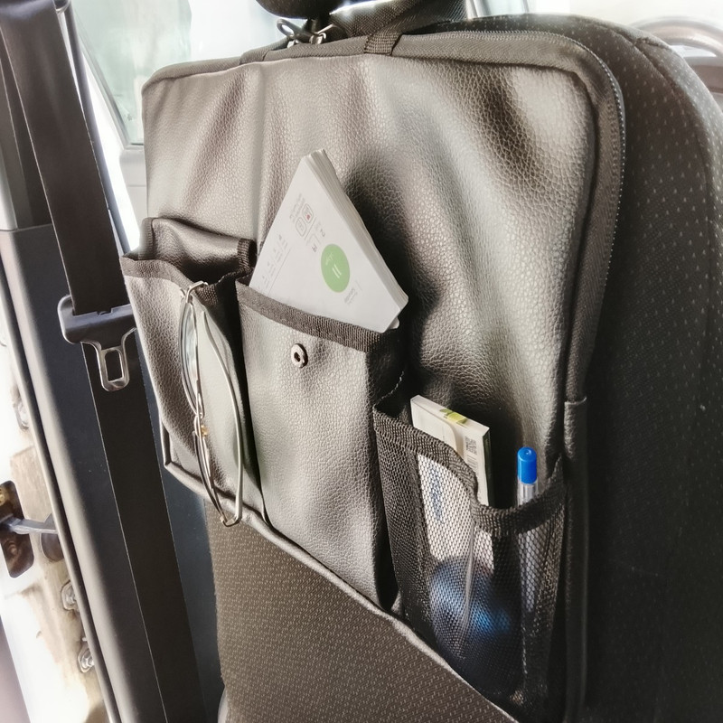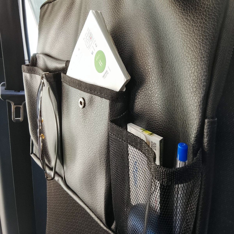 با وجود جیبهای متعدد، وسایل ضروری مانند عینک، خودکار، دفترچه و داروها بهصورت منظم چیده شده و در دسترس سرنشینان قرار میگیرد.