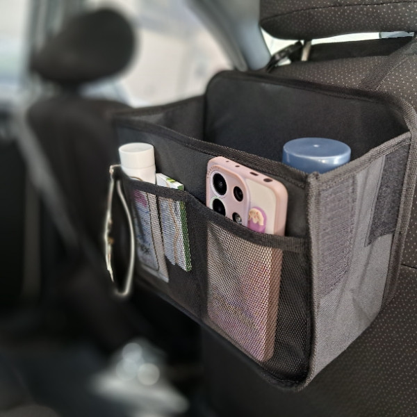با استفاده از این کیف، وسایل کوچک مانند موبایل، دستمال، عینک و بطریها بهصورت مرتب در جای خود قرار میگیرند و از بههمریختگی داخل خودرو جلوگیری میشود.