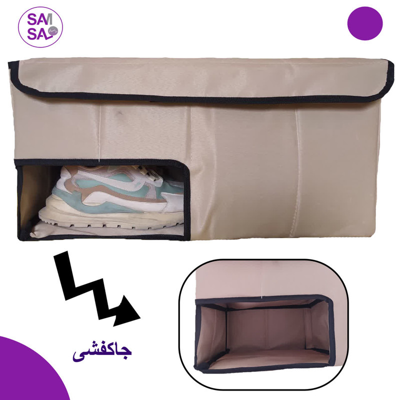 این محصول از مواد پلاستیکی مقاوم و ضداب ساخته شده و دارای جایهایی برای کفشها و وسایل کوچک دیگر میباشد.