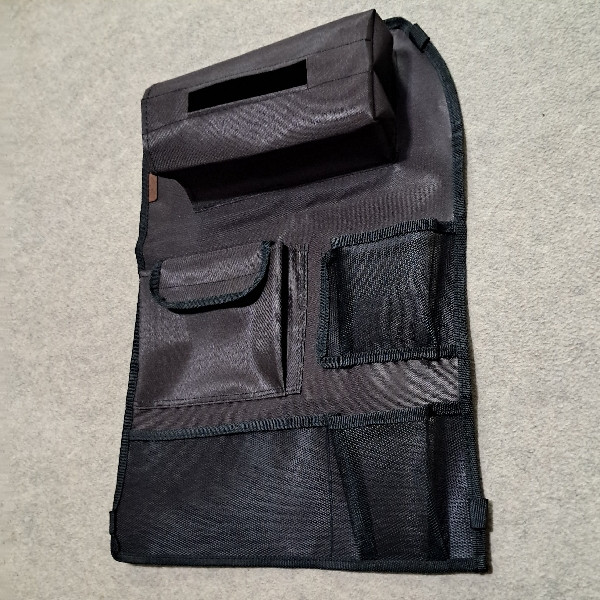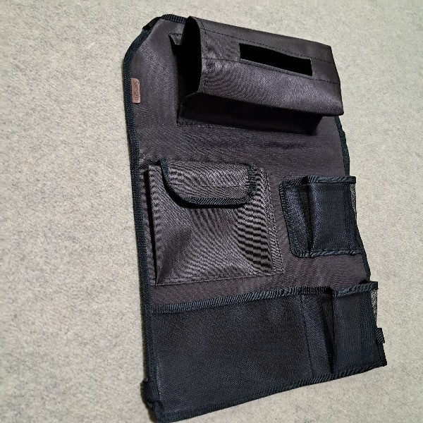این پشت صندلی که از جنس پارچه جدون برزنتی استفاده شده که دارای ۵ محفظه برای وسایل داخل ماشین هست.طریقه نصب از بالا از بندی که دارای سگگ که قابل تنظیم هست واز پایین هم همینطور بند قابل تنظیم هست تعبیه شده و همچنین نکته قابل توجه که این محصول قابل شستشو هستش که برای خانواده هایی که دارای فرزند هستن بسیار مناسب هست.