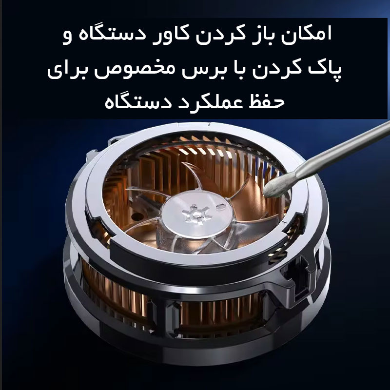 مشخصات: این دستگاه به صورت کاربراتوری بوده و به صورت مستقیم و با کابل Type-C عمل می کند + قابلیت باز شدن درپوش دستگاه برای تمیز کردن پره های فن با برس مخصوص