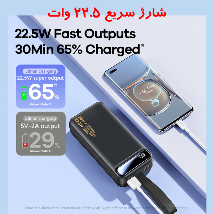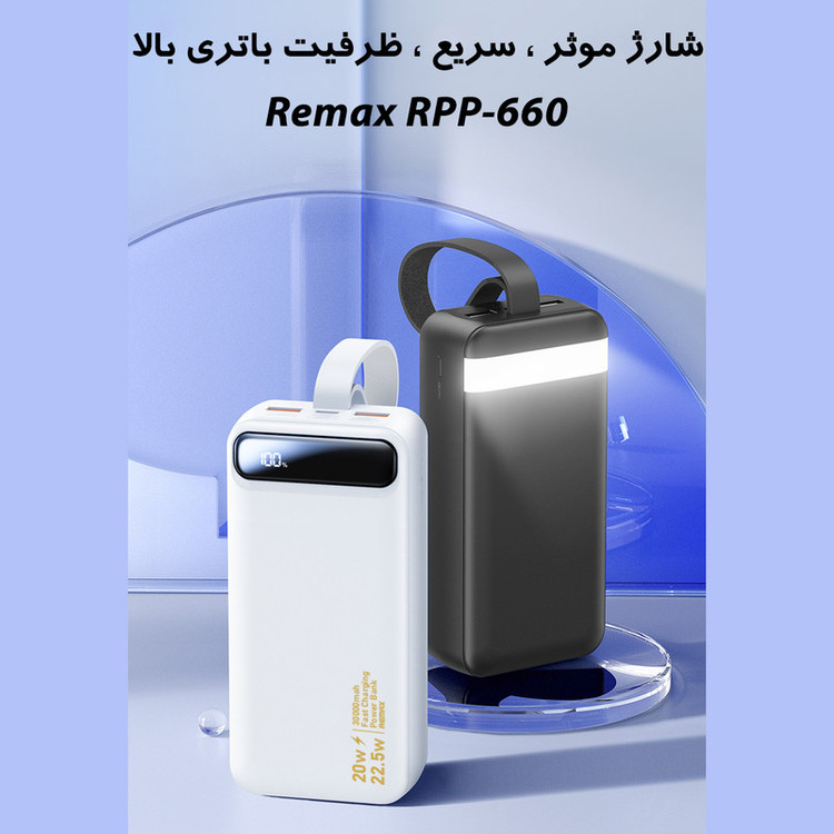 پاوربانک 22.5 وات ریمکس مدل RPP-660 ظرفیت 30000 میلی آمپر ساعت