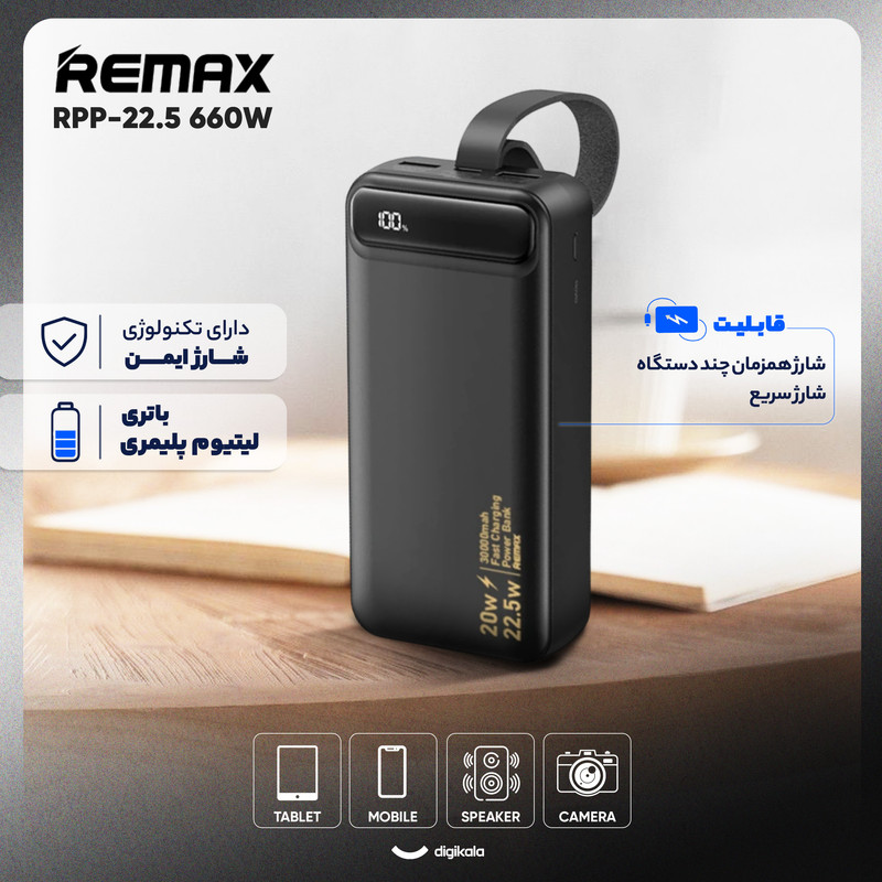 پاوربانک 22.5 وات ریمکس مدل RPP-660 ظرفیت 30000 میلی آمپر ساعت