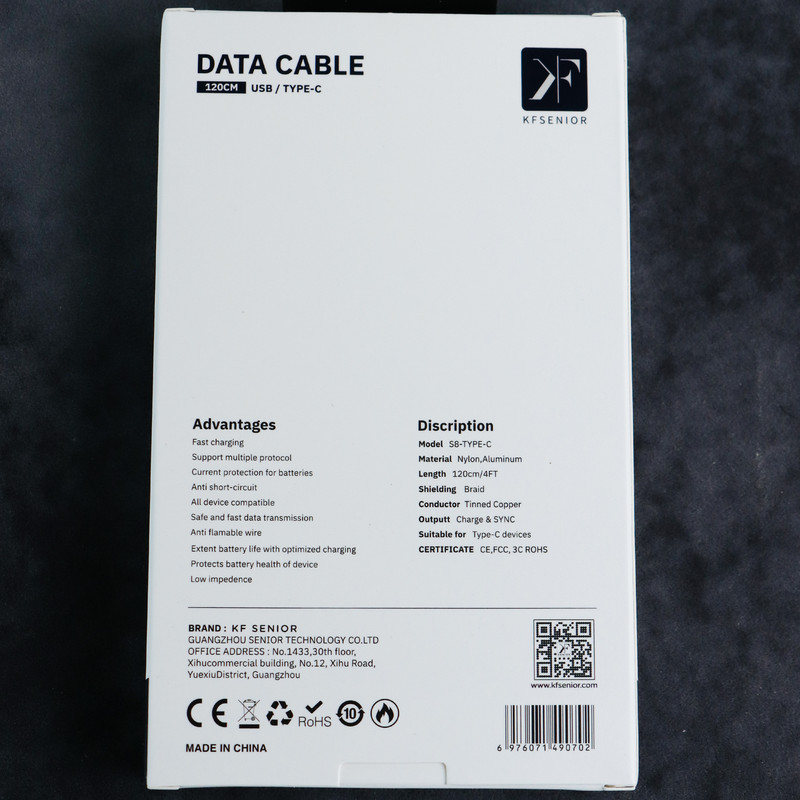 این کابل داده با درگاههای USB و Type-C، محصولی از برند KF Senior است که توسط شرکت فناوری گوانگژو سنیور در چین تولید شده است. این کابل دارای مزایای متعددی از جمله امکان شارژ سریع، پشتیبانی از چندین پروتکل شارژ، و محافظت پیشرفته از باتری در برابر جریانهای نامناسب و اتصال کوتاه است.