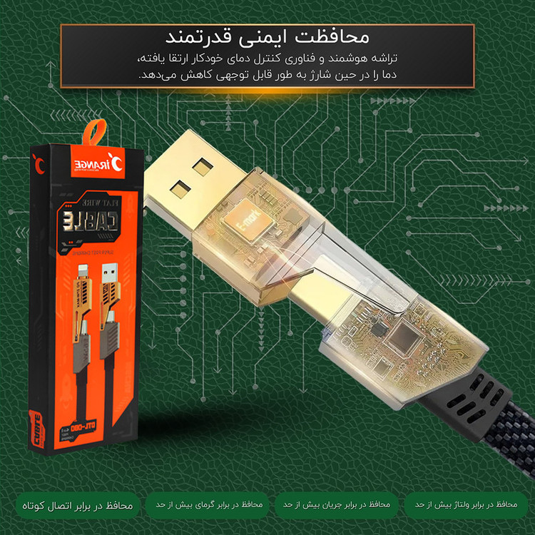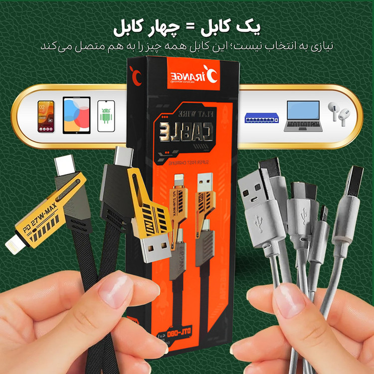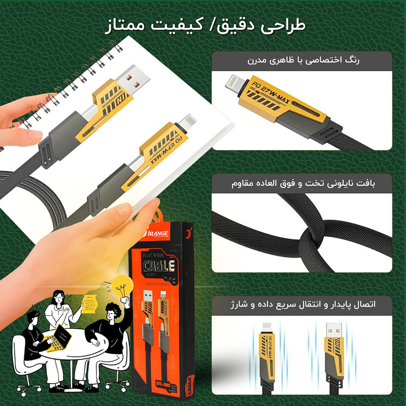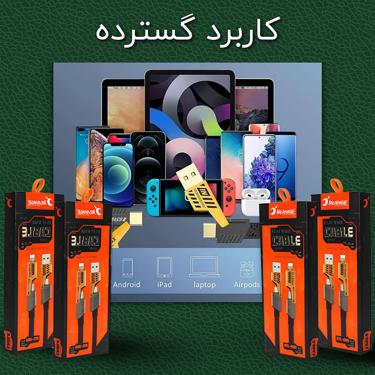 کابل شارژ چندکاره آیرنج بدنه پلاستیکی تخت