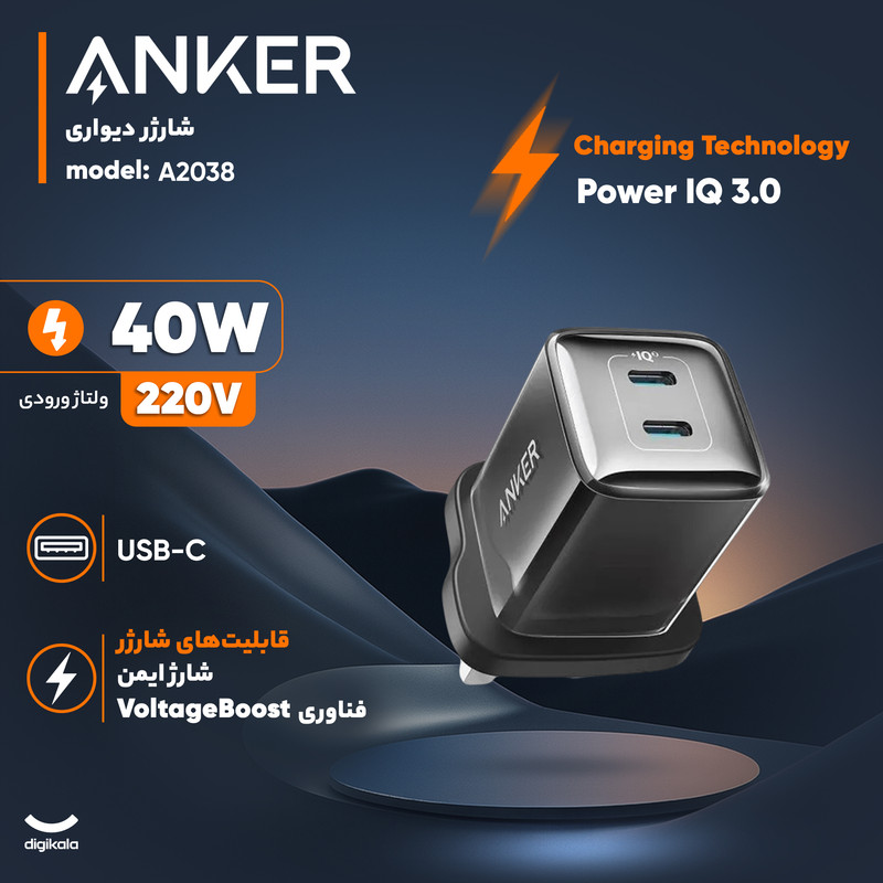 شارژر دیواری 40 وات دو پورت انکر مدل A2038