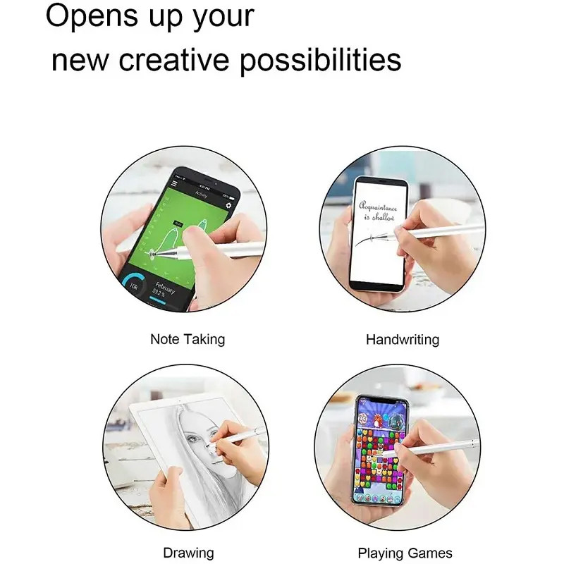قلم لمسی سیلیکونی یا Pen stylus (Silicone Stylus Pen) از یک نوک سیلیکونی نرم و انعطافپذیر برای تعامل با صفحه نمایش استفاده میکند.قلم لمسی دیسکی (Disc Stylus) یک نوع قلم لمسی است که در آن از یک دیسک پلاستیکی برای تعامل با صفحه نمایش استفاده میشود. این دیسک به جای نوک ساده و نازک قلمهای لمسی معمولی استفاده میشود و به راحتی بر روی صفحه نمایش حرکت میکند. ولی قلم دیسکی به دلیل طراحی خاص این قلم، در هنگام استفاده، دیسک فشار متناوبی روی صفحه نمایش اعمال میکند و به عنوان نتیجه، میتوان به طور دقیقی راهنمایی کرد و خطوط دقیق و کنترل بیشتری را در نوشتن و رسم کردن داشت.قلم لمسی دیسکی، معمولا برای کاربرانی که به دنبال دقت بیشتر در نوشتن و رسم کردن هستند، مناسب است که مزایای قلم لمسی دیسکی عبارتند از: دقت بالا در نوشتن و رسم خطوط دقیق.مناسب برای استفاده در برنامههای گرافیکی و نقاشی میباشد
