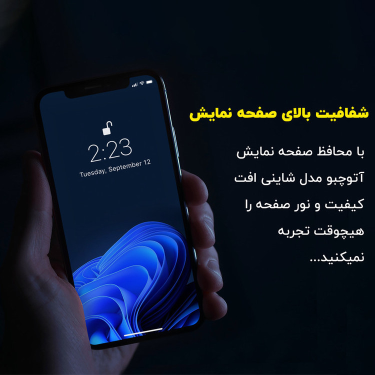 ویژگیها: 9H , جلوگیری از انعکاس نور , قابلیت نصب آسان , مقاوم در برابر چربی و اثرانگشت , مقاوم در برابر خط و خش , نصب بدون حباب , صفحه نمایش