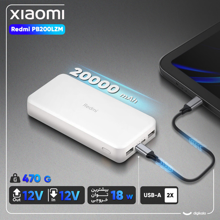 ابعاد پاوربانک: 15.4x7.36x2.73 سانتیمتر