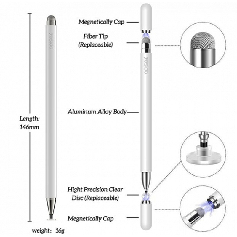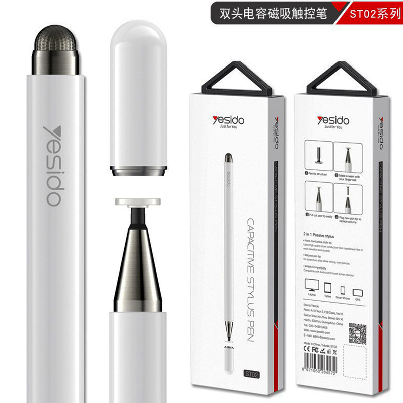 قلم لمسی استایلوس مدل ST02 محصول کمپانی نام آشنای یسیدو (Yesido) محصولی با بدنه ی استوانه ای آلومینیومی و با کیفیت است، موقعیت نوک دیسک توسط توپ های فلزی به هم متصل شده است تا عمر و دوام آن را افزایش دهد. هر دو انتهای آن قابل تعویض هستند و یک تجربه روان نوشتن برای تبلت ها و تلفن های هوشمند لمسی شما ایجاد می کنند.قلم یسیدو ST02 دو سر قابل تعویض دارد یک سر دیسک مانند و یک سر توپی ، که درب مگنتی محصول قابلیت قرارگیری بر روی هر دوسر را دارد. طول این قلم 147 میلیمتر و وزن این قلم 16 گرم می باشد. قلم یسیدو مدل ST02 نوشتن روان و بدون لغزش دارد و سازگار با انواع دیوایس های Android ، iPad ،iPhone و سایر محصولات با صفحات لمسی خازنی است. با وجود قلم یسیدو ST02 نیازی به پیچاندن یا هل دادن درب به عقب ندارید و فقط با نزدیک کردن آن به قلم درب به آسانی سر جای خود قرار می گیرد.