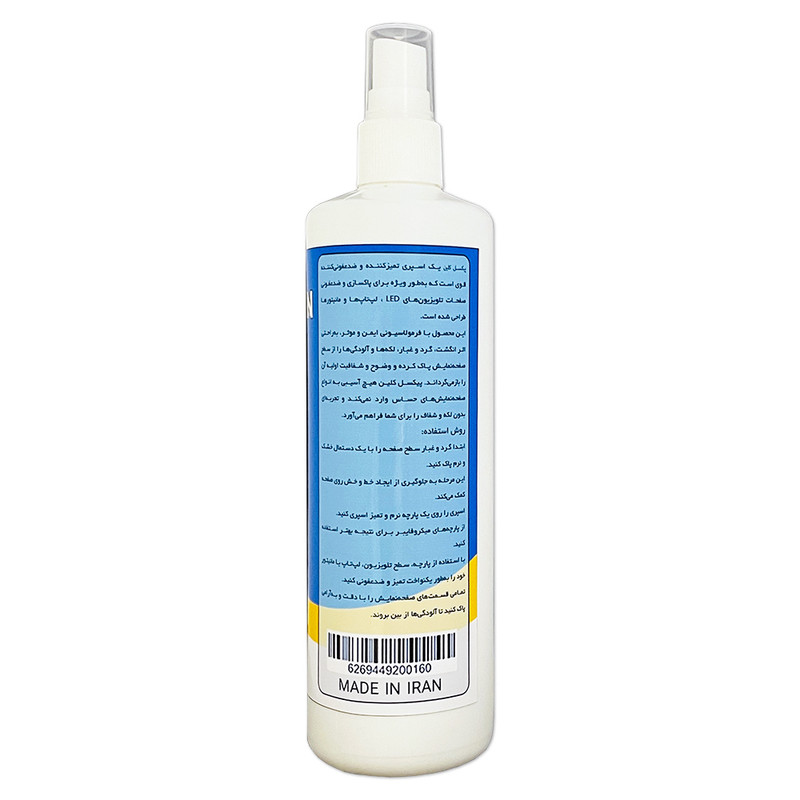 پیکسل کلین یک اسپری تمیزکننده و ضدعفونیکننده قوی است که بهطور خاص برای پاکسازی و محافظت از صفحات حساس مانند تلویزیونهای LED، LCD ، لپتاپها و مانیتورها طراحی شده است. این محصول با فرمولاسیونی ایمن و مؤثر، بهراحتی گرد و غبار، لکهها، اثر انگشت و آلودگیها را از بین میبرد و شفافیت و وضوح اولیه صفحهنمایش شما را بازمیگرداند.