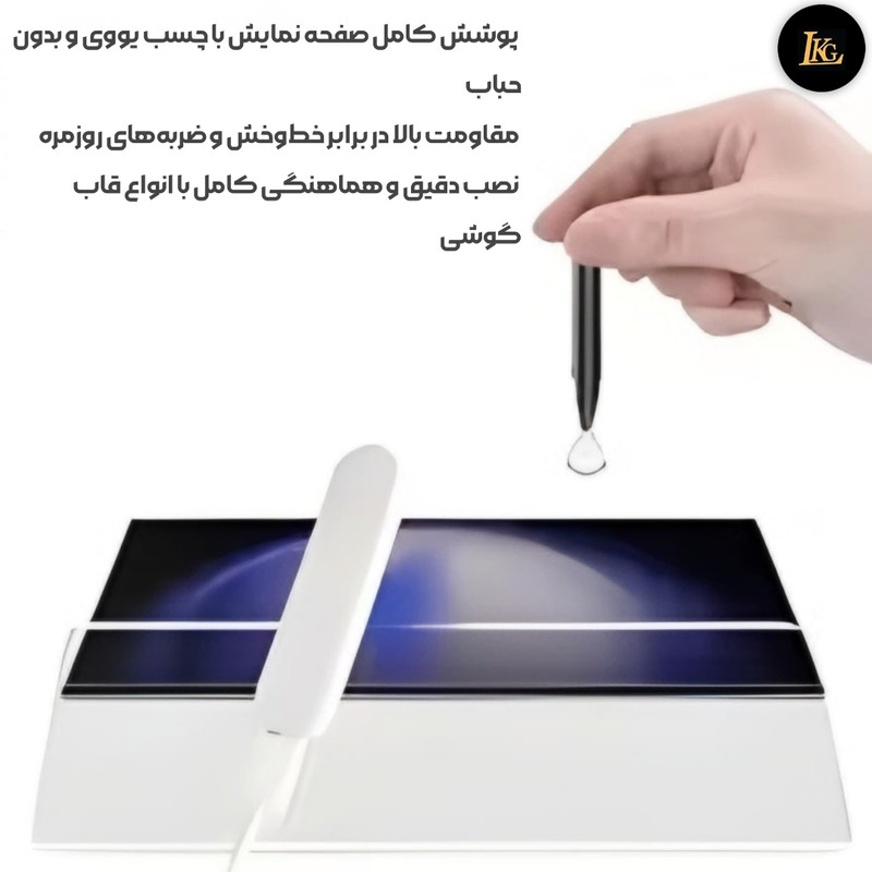 محافظ صفحه نمایش ال کا جی مدل یووی مناسب برای گوشی موبایل شیائومی Redmi Note 14 Pro 4G به همراه محافظ پشت گوشی و محافظ لنز