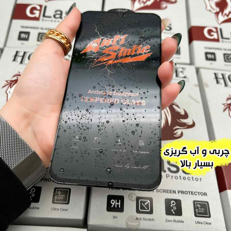 ویژگیها: 9H , قابلیت نصب آسان , جلوگیری از انعکاس نور , مقاوم در برابر چربی و اثرانگشت , مقاوم در برابر خط و خش , نصب بدون حباب