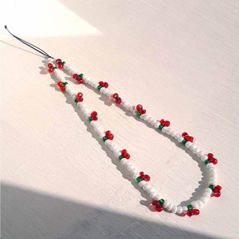 آویز موبایل طرح گیلاس زیبا و محکم و سبک هست از جنس مهره و منجوق میباشد.