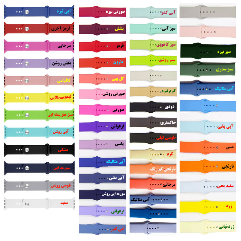 / بنفش روشن / بنفش / ارغوانی / قرمز / مشکی / صورتی / سبز تیره / بادمجانی / صورتی فلورسنت / سرخابی / یاسی / آبی روشن / آبی / کالباسی / زرد / صورتی تیره / آبی نیلی / مرجانی / سبز آبی / نوک مدادی / سبز کله غازی