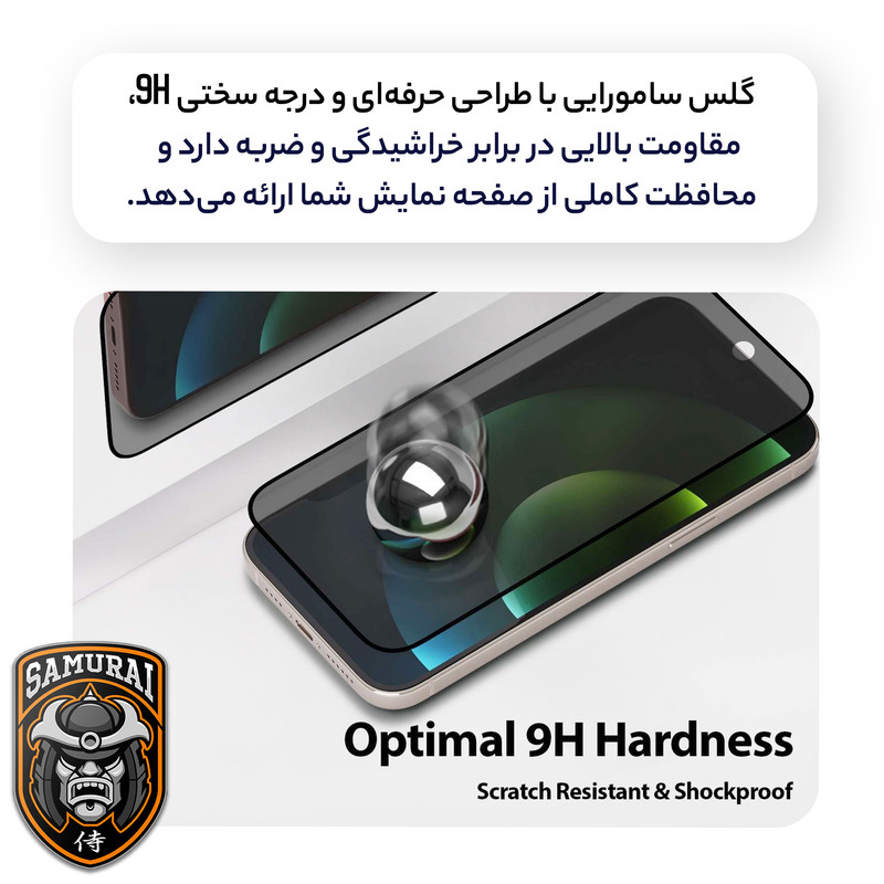 محافظ صفحه نمایش حریم شخصی سامورایی مدل Private مناسب برای گوشی موبایل اپل iPhone 16