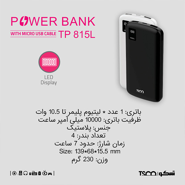مناسب برای شارژ: گوشی موبایل , تبلت , دوربین , اسپیکر بلوتوثی