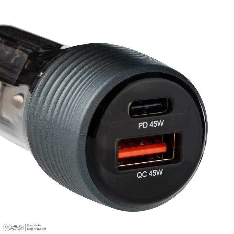 طراحی بدنه این شارژر از جنس باکیفیت و مقاوم ساخته شده و ظاهر شفاف و مدرن آن، جلوهای خاص به فضای داخلی خودرو میبخشد. دو پورت خروجی USB یکی تایپسی و دیگری USB-Aبه شما این امکان را میدهد که بهصورت همزمان دو دستگاه رابدون کاهش سرعت یا توان خروجی شارژ کنید.