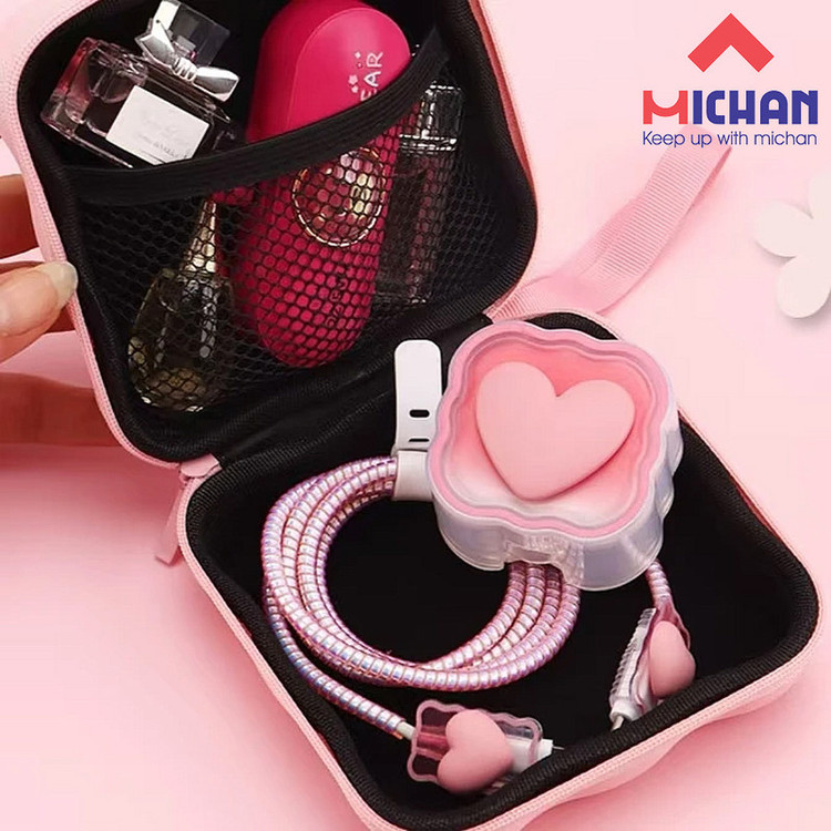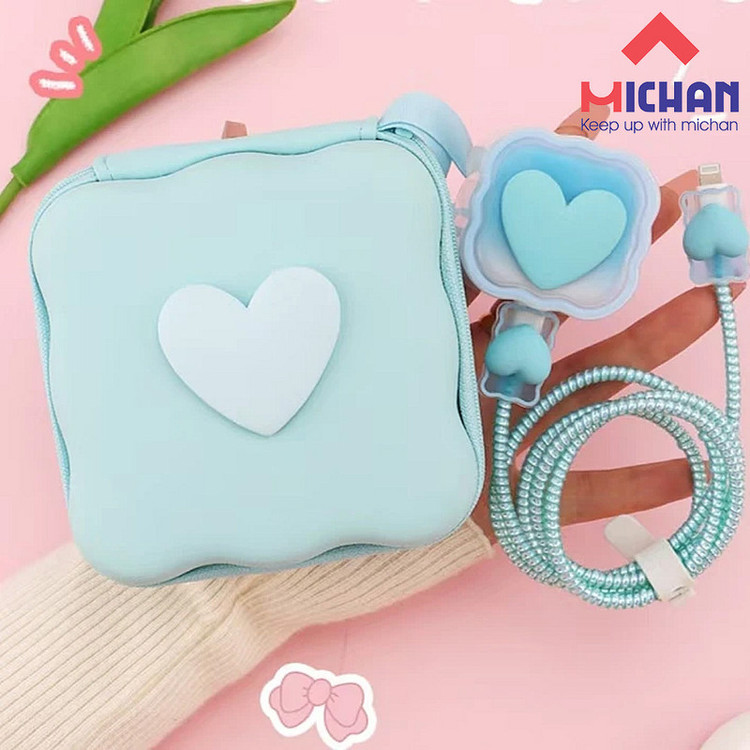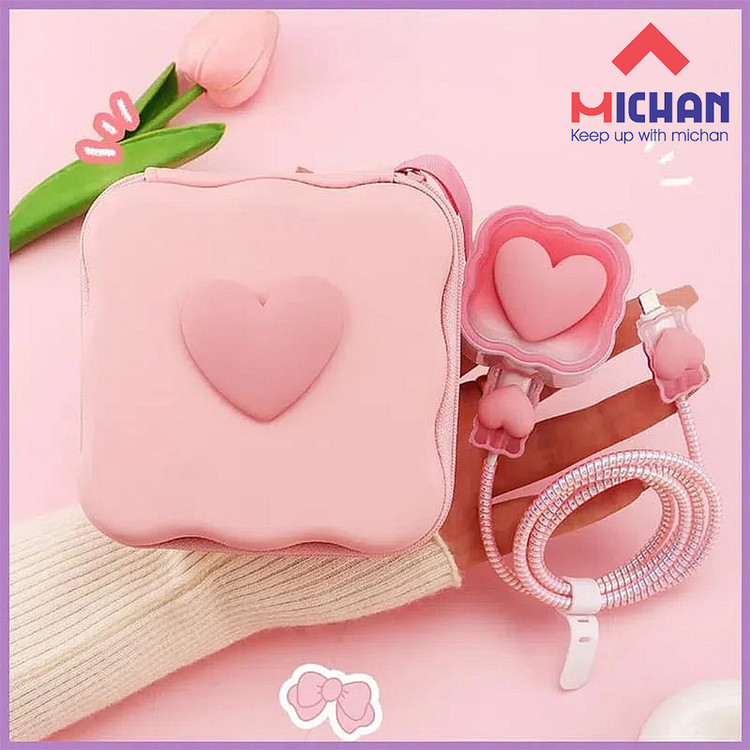 محافظ شارژر میچان طرح قلبی به همراه کیف مناسب برای شارژر اپل 3 پین