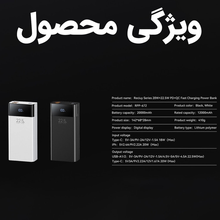 نوع باتری پاوربانک: لیتیوم پلیمری