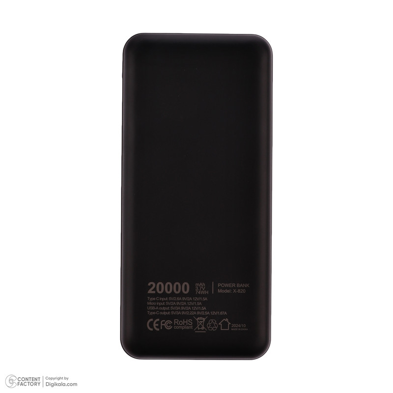 پاوربانک ایکس انرژی مدل X-820 22.5W ظرفیت 20000 میلی آمپر ساعت
