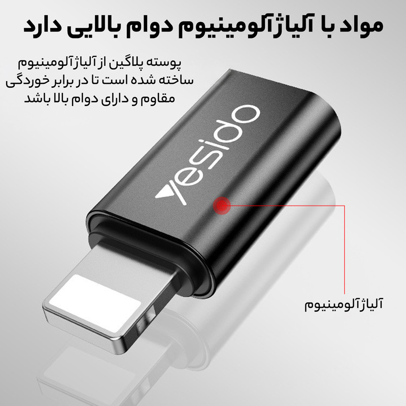 جنس بدنه مبدل Type-Cبه لایتنینگ یسیدو مدل GS03 از آلیاژ الومینیوم می باشد که در برابر ضربه، فشار و ضد زنگ مقاومت بسیار بالایی دارد.