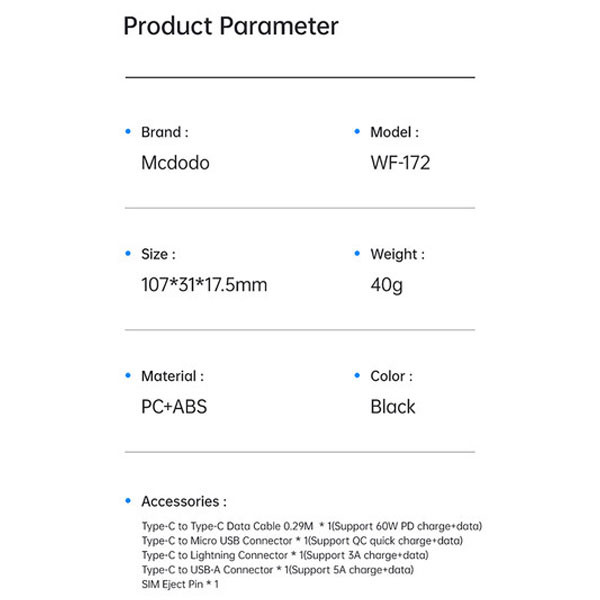 نوع رابط: micro-B , microUSB , لایتنینگ , رابط USB Type-C , USB