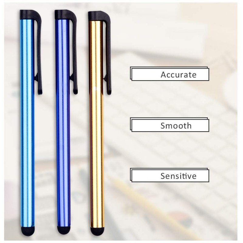 ابعاد: 104x7.2 میلی متر| ساخته شده از: PC امکانات: دارای گیره مخصوص لباس - ابعاد فوق العاده سایر قابلیت ها: سازگار با کلیه دیوایس های لمسی از نوع خازنی نکته!: قلم لمسی در بسته 5 عددی