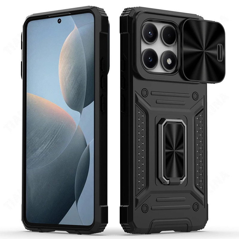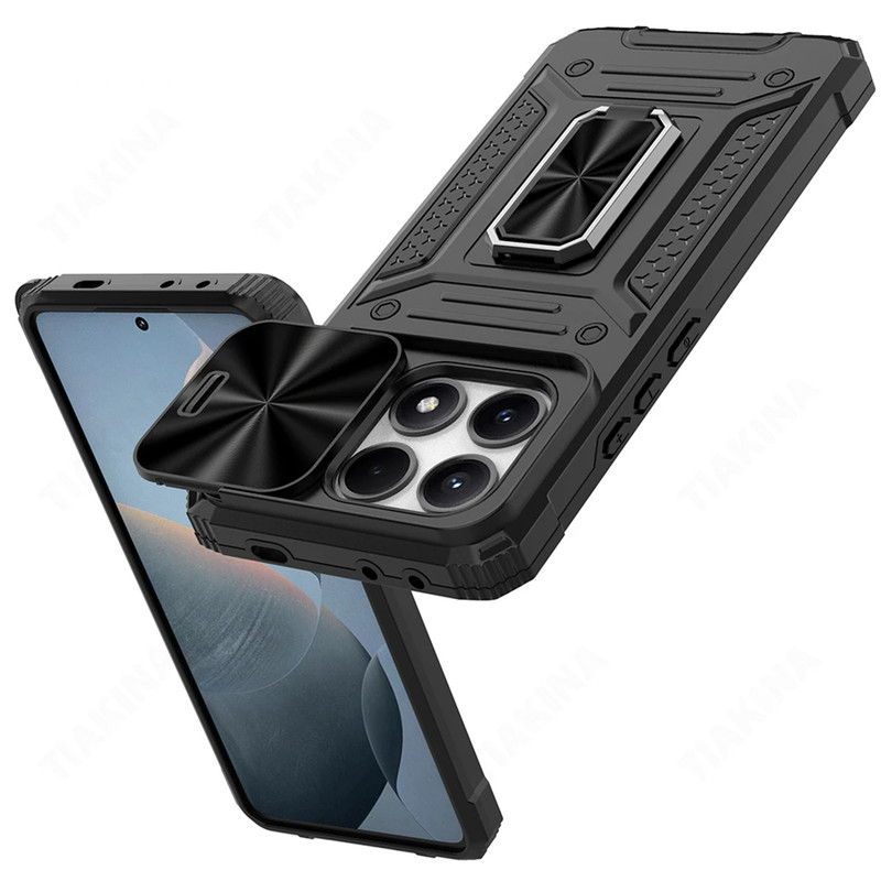 کاور جدید سامورایی سری CamShield Armor به گونه ای طراحی شده است که همه لبه های آن، با ارتفاع قابل توجهی گوشی را در بر گرفته و مانع از آسیب دیدن گوشی Xiaomi PocoX6Pro5G / RedmiK70E شود. گرچه این قاب با لبه های ژله ای هر چهار طرف گوشی را پوشانده است، اما به دلیل انعطاف پذیری لبه ها، کاربران برای نصب و جداسازی این قاب روی گوشی زحمتی نخواهند داشت و فشاری به گوشی وارد نمی شود. ژله ای بودن دور کاور باعث میشد در صورت سقوط گوشی روی زمین شوک ناشی از ضربه در همه زوایای کاور پخش شده و آسیبی به گوشی وارد نشود. یکی از مهمترین ویژگی های این قاب وجود حلقه نگهدارنده در پشت قاب است که شما میتوانید از حلقه ای که به این قاب متصل است در موارد گوناگون استفاده کنید. برای نمونه: با قرار دادن انگشت دورن حلقه، گوشی شیائومی Xiaomi Poco X6 Pro 5G / Redmi K70 E داشتن حالت آهن ربایی می تواند به خوبی روی هولدرهای آهنربایی داخل خودرو بچسبد و دیگر نیازی به استفاده از برچسبهای آهن ربایی مجزا نخواهید داشت. این قاب دارای یک اسلاید کشویی است که به خوبی از دوربین محافظت می کند. همچنین در اطراف لنز های دوربین مقداری برجستگی وجود دارد که می تواند از دوربین گوشی هنگام ضربه محافظت کند.